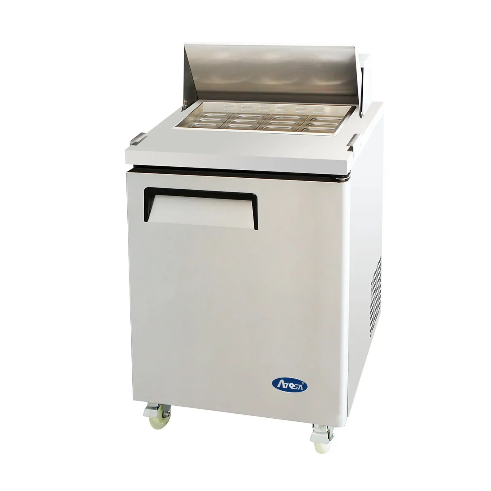 Discover kitchen perfection with the Atosa USA, MSF8305GR Refrigerated Counter, Mega Top Sandwich / Salad Unit. This one-section refrigerator is designed to meet the demands of a busy commercial restaurant. With its spacious 7.2 cu. ft. capacity, it provides ample storage for all your sandwich and salad ingredients. The unit comes with 12 stainless steel pans, allowing you to organize your ingredients efficiently. The rear-mounted, self-contained refrigeration system ensures consistent cooling, while the digital temperature control allows you to set the temperature between 33° to 40°F to keep your ingredients fresh. The solid hinged self-closing door and adjustable shelf provide easy access and flexibility. The 10" poly cutting board is perfect for food preparation, and the stainless steel interior and exterior ensure durability and easy cleaning. With its compact size and 5" casters, this unit is both space-saving and mobile. Trust Atosa USA for quality and reliability in your commercial kitchen.
