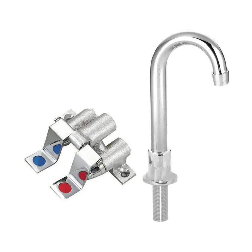 Master the art of flavor with the BK Resources, BKFV-DGS-G Foot Valve. This foot valve kit is designed to enhance efficiency and convenience in a commercial restaurant setting. The dual pedal feature allows for easy control of water flow, ensuring a seamless experience for chefs and kitchen staff. The kit includes a deck-mounted 3-1/2" gooseneck spout, providing flexibility and reach for various tasks. The cast body and chrome-plated pedals not only add durability but also give the foot valve a sleek and professional look. With its lead-free and NSF certification, you can trust that this foot valve meets the highest standards of safety and quality. Whether you're washing dishes or prepping ingredients, the BK Resources, BKFV-DGS-G Foot Valve is a reliable and essential tool that will help you master the art of flavor in your commercial restaurant.