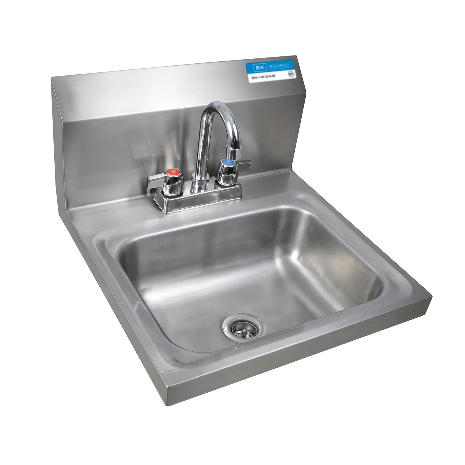 Experience kitchen innovation with the BK Resources, BKHS-D-1410-P-G Hand Sink. This wall-mounted hand sink is designed to meet the needs of commercial restaurants, offering convenience and functionality. The 14" wide x 10" front-to-back x 5" deep bowl provides ample space for handwashing, ensuring proper hygiene in a busy kitchen environment. The 4" O.C deck mount faucet, made of lead-free material, allows for easy water control and meets NSF standards. The marine edge prevents water from spilling over, keeping the surrounding area clean and dry. Constructed with 304 stainless steel, this hand sink is durable and resistant to corrosion, making it ideal for heavy-duty use. The sink includes a basket drain and wall mounting hardware, providing everything you need for easy installation. Trust BK Resources for high-quality, reliable kitchen equipment that enhances efficiency and cleanliness in your restaurant.