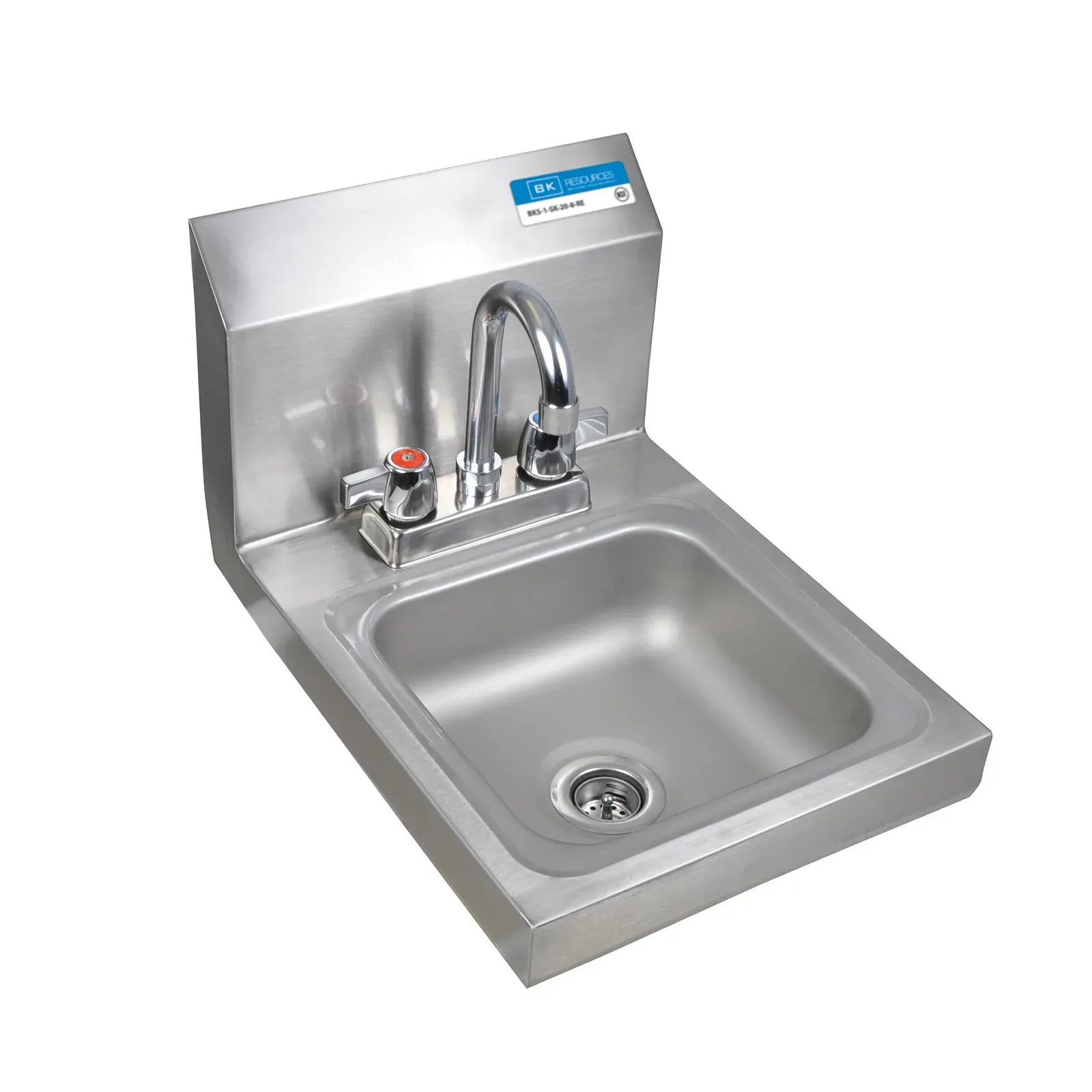 Discover kitchen perfection with the BK Resources, BKHS-D-SS-P-G Hand Sink. This space-saving hand sink is designed specifically for commercial restaurant use, ensuring efficiency and convenience in your kitchen. The sink features a 9" wide x 9" front-to-back x 5" deep bowl, providing ample space for handwashing. The 4" OC deck mount faucet, made of lead-free material, guarantees a steady flow of water. The marine edge and 7-1/2"H backsplash prevent water from splashing onto the surrounding area, keeping your kitchen clean and safe. Constructed with 304 stainless steel, this hand sink is durable and resistant to corrosion, ensuring long-lasting performance. The sink comes complete with a basket drain and wall mounting hardware, making installation a breeze. NSF certified, this BK Resources hand sink meets the highest standards of sanitation and hygiene. Upgrade your restaurant kitchen with the BK Resources, BKHS-D-SS-P-G Hand Sink and experience the perfect blend of functionality and quality.