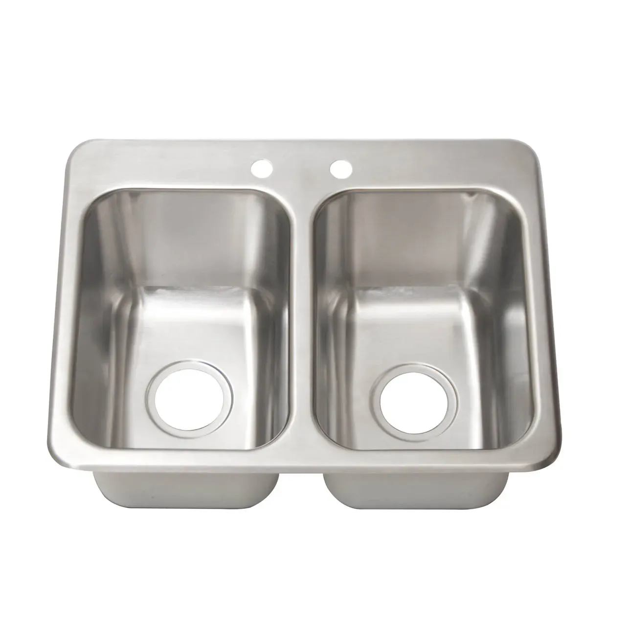 Equip your kitchen for success with the BK Resources DDI2-10141024-P-G Drop-In Sink. This two-compartment sink is designed to meet the demands of a busy commercial restaurant. With an overall size of 24"W x 18-1/2"D x 10"H, it provides ample space for washing and rinsing dishes. The two 10" wide x 14" front-to-back x 10" deep compartments are perfect for separating different types of dishes or for multitasking during peak hours.
