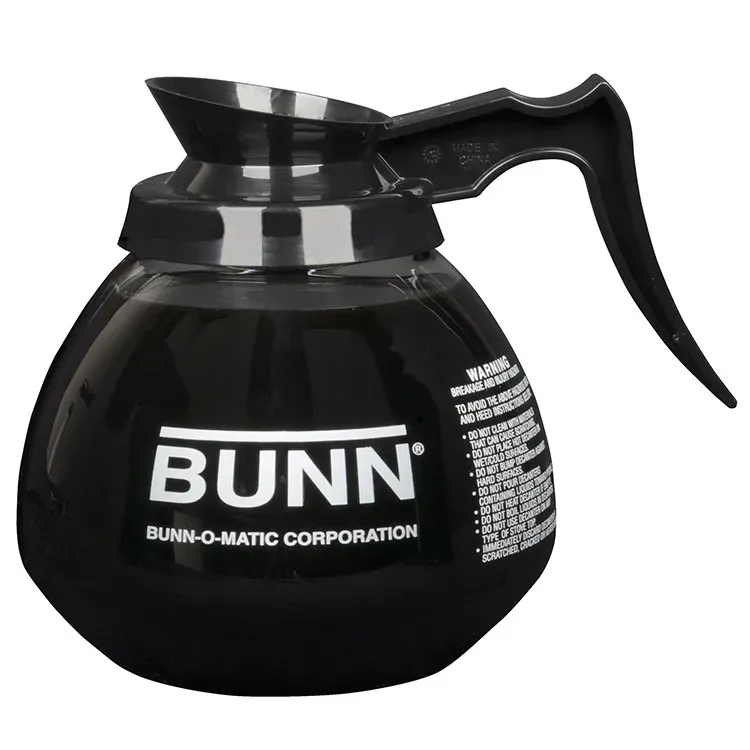 Craft dishes with top-notch instruments using the Bunn, 42400.0103, Coffee Decanter. Designed for commercial restaurant use, this decanter is a must-have for any coffee lover. With a capacity of 64 oz., it allows you to serve multiple cups of coffee without the need for constant refills. The glass construction ensures durability and easy cleaning, while the black handle provides a comfortable grip for pouring. Ideal for high-traffic environments, this decanter ensures you can keep up with demand effortlessly. Whether you're serving hot coffee to your customers or preparing large batches for catering events, this Bunn coffee decanter delivers exceptional performance. Trust in the quality and reliability of Bunn, a trusted name in the industry. Elevate your coffee service with the Bunn, 42400.0103, Coffee Decanter.
