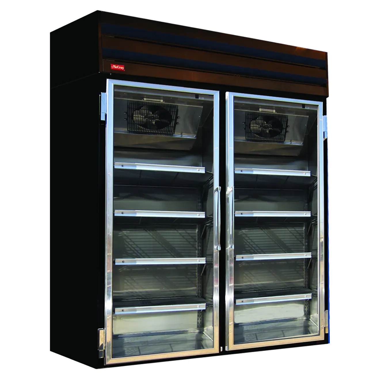 Realize kitchen dreams with the Howard-McCray GF48-FF-B Freezer Merchandiser. This two-section frozen foods merchandiser is designed to meet the needs of commercial restaurants. With a spacious 48 cu. ft. capacity and four epoxy-coated shelves per door, you'll have plenty of room to showcase your frozen food products. The hinged glass doors not only provide easy access for customers but also allow for maximum visibility, enticing them to make a purchase. The black exterior and interior give this freezer a sleek and professional look that will complement any restaurant decor. Equipped with top mount self-contained refrigeration and automatic defrost, this freezer ensures optimal temperature control and minimal maintenance. The LED lighting illuminates your products, making them even more enticing to customers. With its 3/4 HP compressor and UL EPH and UL Sanitation certifications, you can trust that this freezer is built to last and meet the highest standards of quality and safety. Upgrade your restaurant with the Howard-McCray GF48-FF-B Freezer Merchandiser.