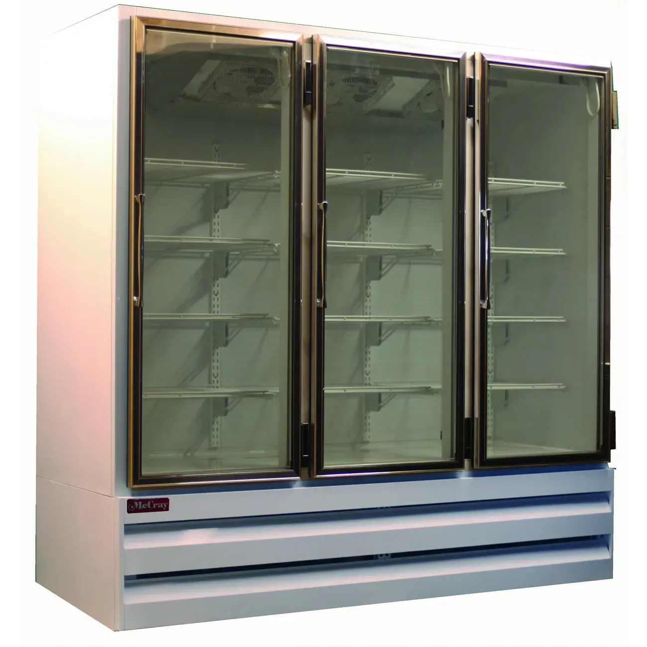 Unleash your inner chef with the Howard-McCray GR65BM Refrigerator Merchandiser. This three-section refrigerator is designed for commercial restaurant use, offering a spacious 65 cu. ft. capacity to store all your ingredients and beverages. The hinged glass doors provide easy access and allow customers to see the tempting treats inside. With four epoxy coated shelves per door, you can organize your products efficiently. The bottom mount self-contained refrigeration system ensures optimal cooling performance, while the automatic defrost feature saves you time and effort. The LED lighting illuminates the interior, making it easy to find what you need. The white exterior and interior give a clean and professional look to your establishment. With electronic controls and a 1/2 HP compressor, this refrigerator is both reliable and energy-efficient. Trust Howard-McCray, a reputable vendor in the industry, and elevate your restaurant's refrigeration capabilities with the GR65BM Refrigerator Merchandiser.