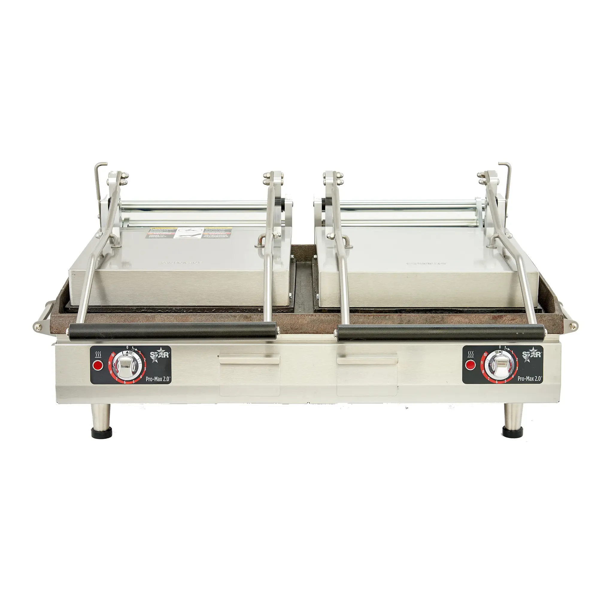 Unleash gastronomic brilliance with the Star PGC28IE Sandwich/Panini Grill. This high-quality grill is a must-have for any commercial restaurant looking to elevate their sandwich game. With its 28" W grooved cast iron cooking surface, this grill ensures even heat distribution and perfect grill marks on every sandwich. The counterbalance hinge system allows for easy operation and consistent pressure, resulting in evenly cooked sandwiches every time. The electronic temperature control with a timer ensures precise cooking, while the low profile design saves valuable countertop space. The removable grease drawer makes cleaning a breeze, and the stainless steel exterior adds durability and a sleek look to any kitchen. With adjustable metal legs, this grill can be customized to fit any workspace. Trust in the Star PGC28IE Sandwich/Panini Grill to deliver exceptional sandwiches and satisfy your customers' cravings.