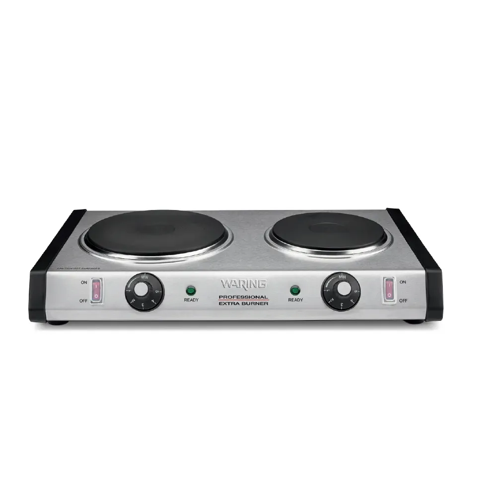 Upgrade your restaurant kitchen with the Waring WDB600 Hotplate. This commercial-grade electric countertop hotplate is designed to meet the demands of a busy restaurant kitchen. With its heavy-duty cast iron burner plates and independent adjustable thermostats, you can easily cook multiple dishes at different temperatures simultaneously. The non-slip rubber feet ensure stability and safety during use. The brushed stainless steel housing not only adds a sleek and professional look to your kitchen but also makes it durable and easy to clean. The WDB600 features a 1300-watt large plate and a 500-watt small plate, providing a total of 1800 watts of power. This hotplate operates on 120v/60/1ph and requires 15 amps. It is cULus and NSF certified, guaranteeing its quality and safety. Upgrade your kitchen with the Waring WDB600 Hotplate and experience the convenience and efficiency it brings to your restaurant.